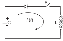 In the circuit shown in Fig. 1, L = 5 μH and C = 20 μF. C is initially charged to 200 V. After the switch S is closed at t = 0, the maximum value of current and the time at which it reaches this value are, respectively—