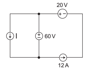 In the interconnection of ideal soures shown in the figure, it is known that the 60V source is absorbing power. Which of the following can be the value of the current source I?
