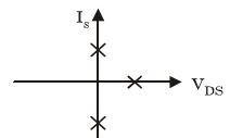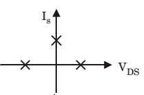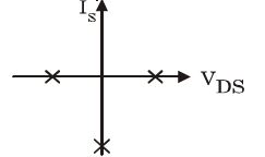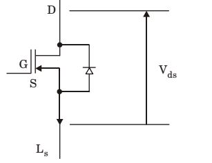 Figure given below shows a MOSFET with an integral body diode. It is employed as a power switching device in the ON and OFF states through appropriate control. The ON and OFF states of the switch are given on the V