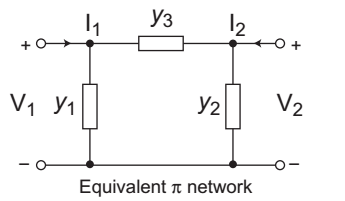 - Equivalent π network The currents I1 and I2 at the output of 2-port network can be written as